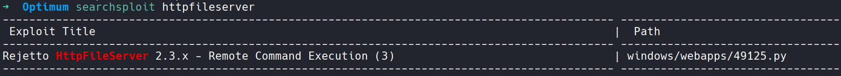 nmap -sVC -p80 10.169.236.31 -oN optimum.nmapInfos supplémentaires :