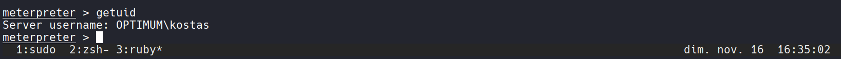 [*] Meterpreter session 1 opened (10.10.14.66:4444 -> 10.129.236.31:49162) at 2025-11-16 16:31:10 +0100